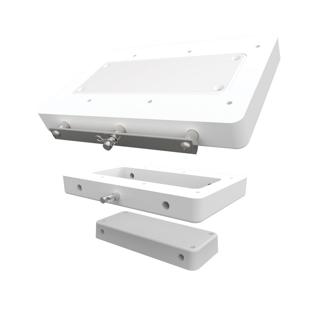 Easily remove your electric-steer, bow-mount trolling motor. High-yield composite construction is super strong and impervious to corrosion and specifically designed for higher thrust motors and longer shaft lengths. Low-profile design leaves deck clear when motor is removed. Locking handle with stainless steel pins can be secured with padlock (padlock not included, sold separately).
