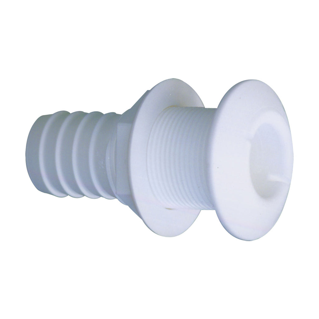 White acetal through hull fittings. Suitable for most above waterline outlets.