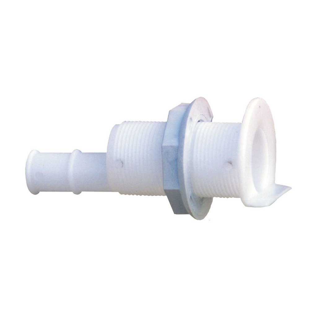 Manufactured from U.V. stabilised, white acetal.Features ‘L’ shaped head for lowest possible drainage point. Ideal for cockpit and livewell drains.
