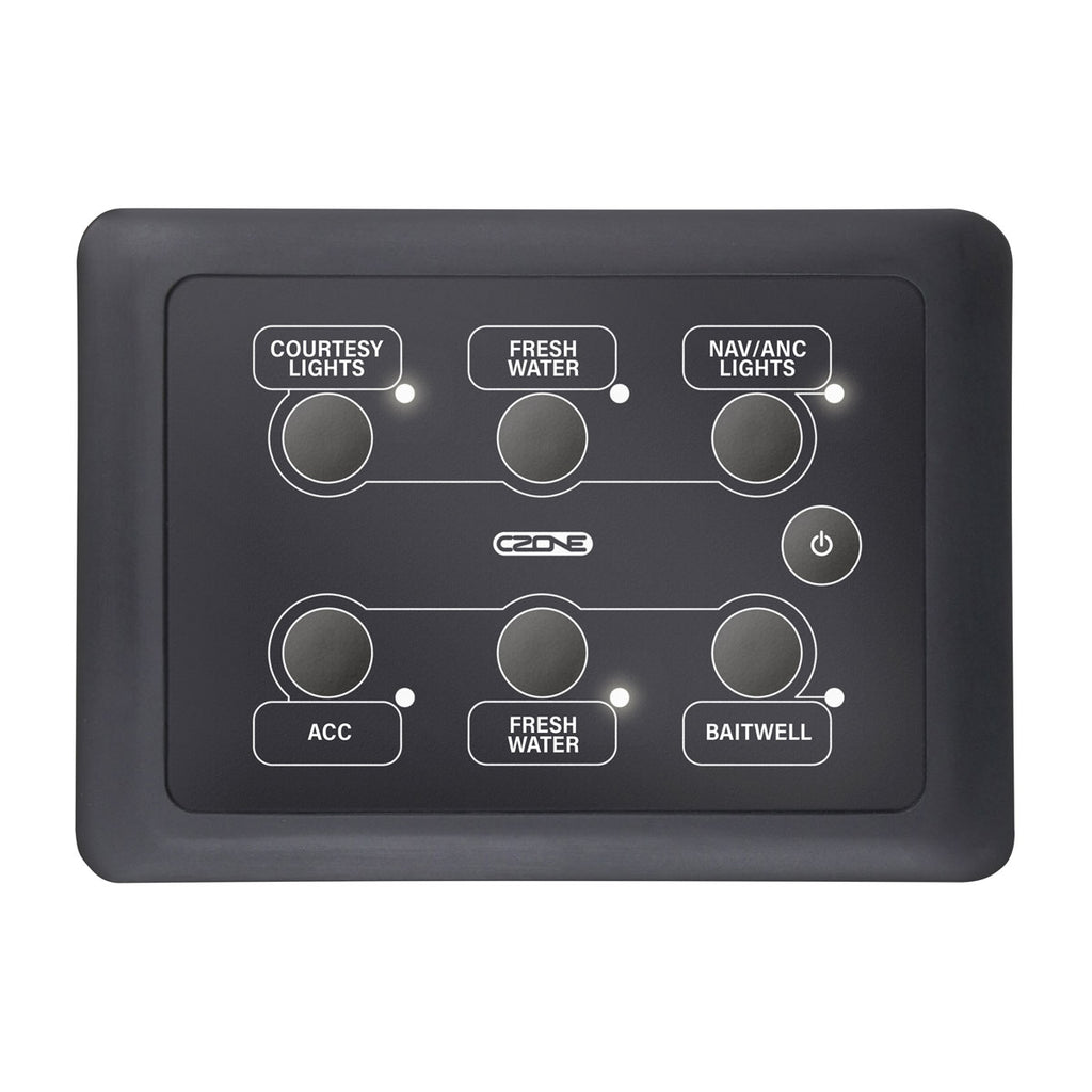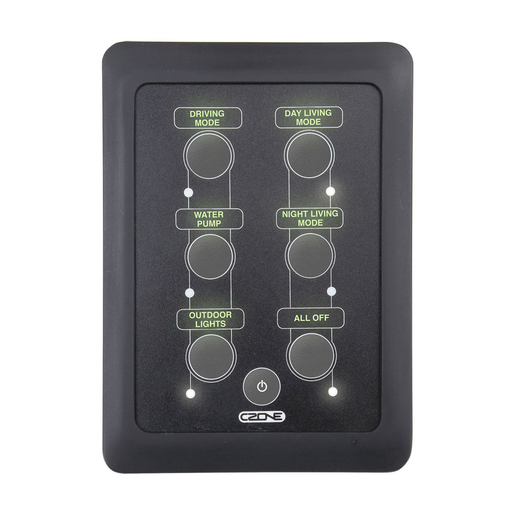 The CZone Waterproof Keypad range Features dimmable RGB circuit backlighting in a robust IPX7 waterproof enclosure and is available in portrait and landscape orientations. Simplify dashboard installations by removing wiring clutter with a single network cable. Front mount installation with a single 2 1/16†(52mm) hole saw, or rear mount to achieve a flat mount glass dash style look. Keypads ship with a standard label sheet for personalised circuit labelling.