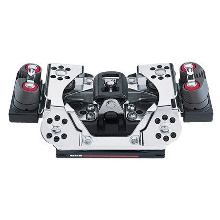 Race once with the windward sheeting traveler car and you 'll never race without one again. Pull the car above the centerline without releasing the leeward control line. Tack, and the car stays in the same position, ready to be pulled to the new windward side.