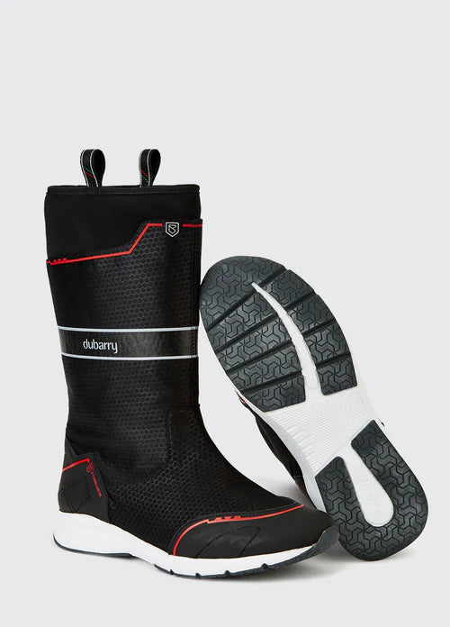 Waterproof and flexible lightweight boots for active sailing, with award-winning grip. Dubarry's trademark system of water dispersion channels prevent aquaplaning on slippery wet decks. The low-profile midsoles are made from premium EVA for extra shock absorbing performance while our D-Chassis system supports your heels, minimising pronation. The mesh and Lycra uppers have an anti-microbial finish for odour control and the footbeds are removable, so they'll dry out quickly if they do get drenched by a rogue wave. They'll slip on easily when the skipper calls for all hands on deck, with Lycra collars to ensure a secure, comfortable fit that doesn't impair your agility.