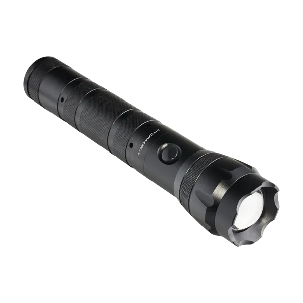 The HYDRACELL™ Aqua Pro Aluminium Flashlight is a high power aluminium LED flashlight powered by a proprietary HYDRACELL HC2D water activated battery fuel cell. HYDRACELL battery fuel cells last up to 20 times longer than leading alkaline disposal batteries. Biodegradable and recyclable HYDRACELL’s battery fuel cells are a better choice for a smarter, cleaner and more sustainable future. A bright, long-life Cree LED provides focused light wherever a dependable high-power flashlight is needed. A focal head provides both area light and a focused beam. The Aqua Pro is perfect for everyday use and emergency situations. Store at home, in your shelter, in your vehicle or boat and simply activate the HYDRACELL in water.