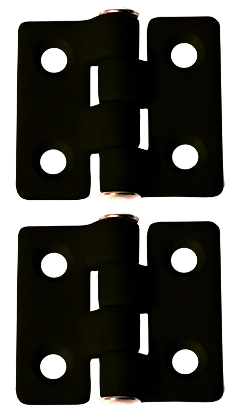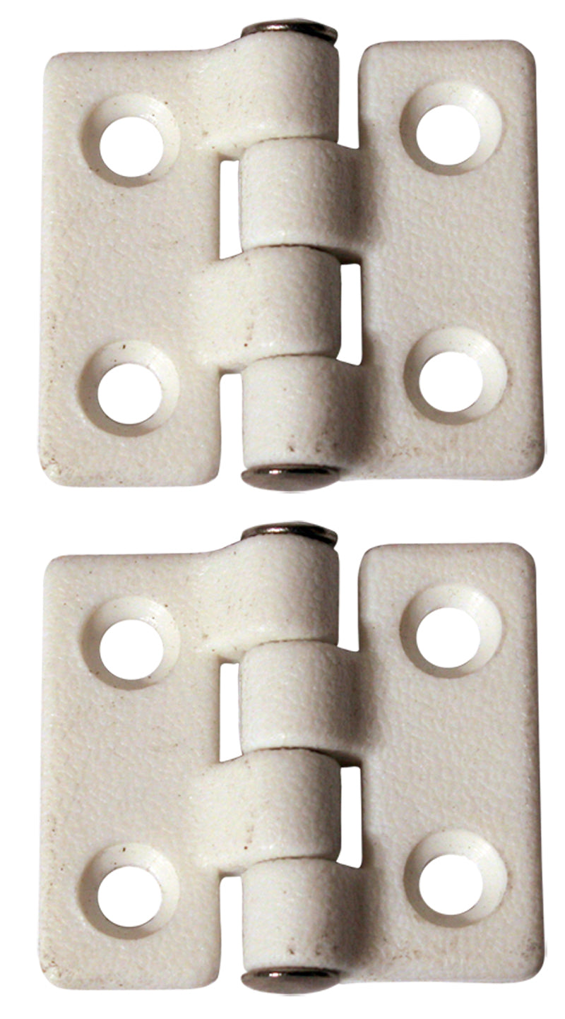 Quality nylon with a stainless steel hinge pin. Available in white or black, sold in pairs. Length Overall - 40mm Width - 35mm Length Ratio - 20/20mm