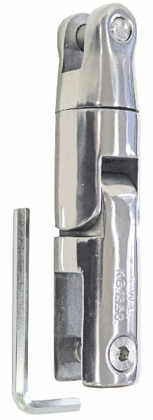 Single swivel or dual swivel anchor to chain connectors made from 316 grade stainless steel. Prevents chain and anchor from twisting when setting and retrieving anchor. Slides over bow rollers for easy retrieval. An allen key is provided with each swivel to remove the pins to attach the anchor and chain. Safe working load (SWL) is stamped into each swivel.