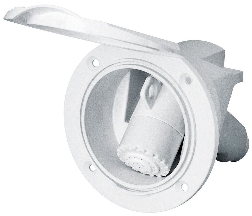 Nuova Rade Italian made "Premium" transom shower sets incorporate stylish design, durability and functionality. A "click" confirms the hinged cover is tightly closed, preventing the shower hose from uncoiling and potentially getting caught in the propeller. Available with white or chrome covers, the housing fits snugly in any deck or transom to give a neat, clean look. The single housing sets include the cover with shower symbol, 3 metre shower hose, shower spray head and cover - or the housing with tap symbol and chrome brass mixer tap with 200mm 3 hose connections to allow both hot and cold water. Installation is relatively simple and they are made from durable UV resistant ASA plastic material with a 316 stainless hinge pin for long and maintenance free life. Your existing galley pressure pump can be used to supply the water. They are available in single or twin housing in either white or chrome, in different conifigurations.