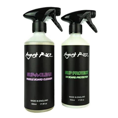 The SUP Kit is made up of the SUP Cleaner and SUP Protect. It is a complete care package for your inflatable or rigid paddle board. T The SUP Cleaner (Step 1) quickly restores the appearance of your board often to like new condition and the protector give a sheen finish and acts to reduce water drag. The SUP Cleaner is a specially formulated mix of low foaming detergents to gently remove salt, algae and carbon from inflatable or rigid boards, helping to prevent cross contamination of water courses. The SUP Protect (Step 2) is a spray-applied conditioning/protective UV treatment for inflatable or rigid paddle boards that gives lasting protection against both salt & UV damage. Step 1 and Step 2 are sold separately.